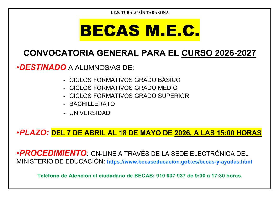I.E.S. TUBALCAÍN C/ Avda. La paz s/n 50500 TARAZONA (ZARAGOZA)